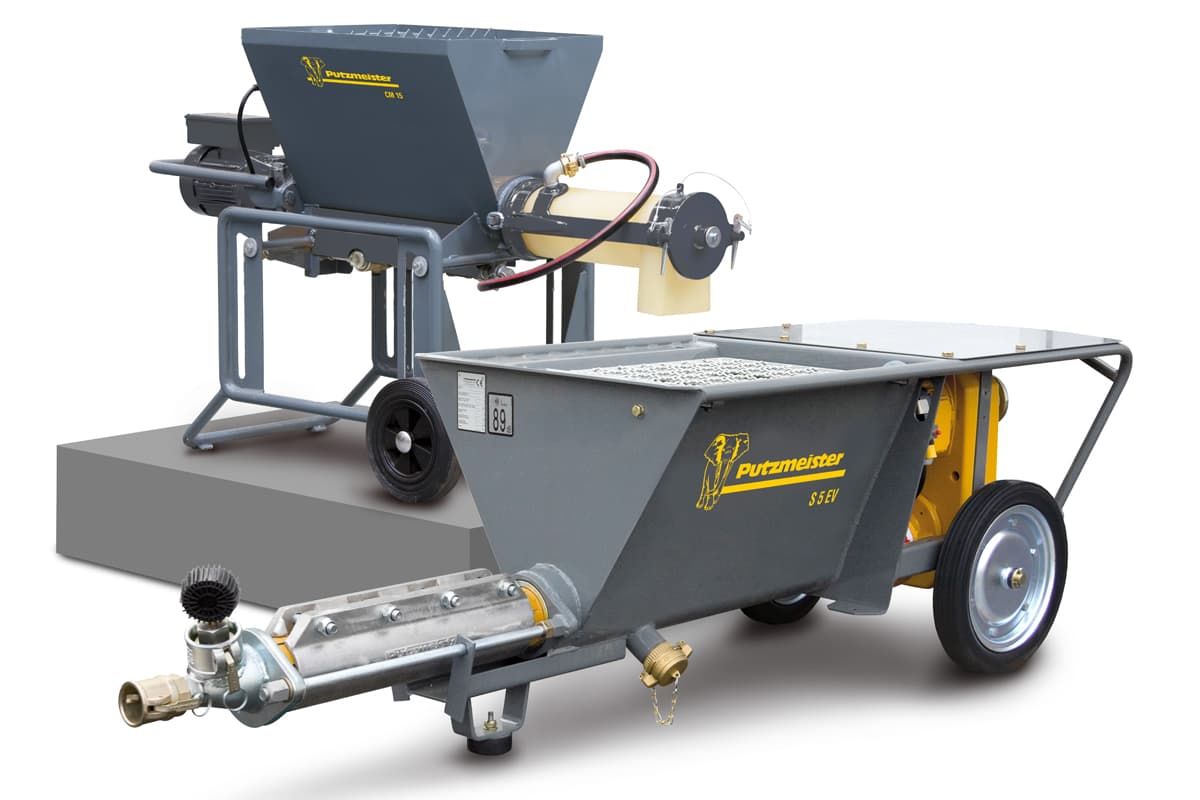Этот насос с электрическим двигателем работает от сети переменного тока напряжением двести двадцать вольт. Он предназначен для непрерывного смешивания компонентов различных густых строительных составов.